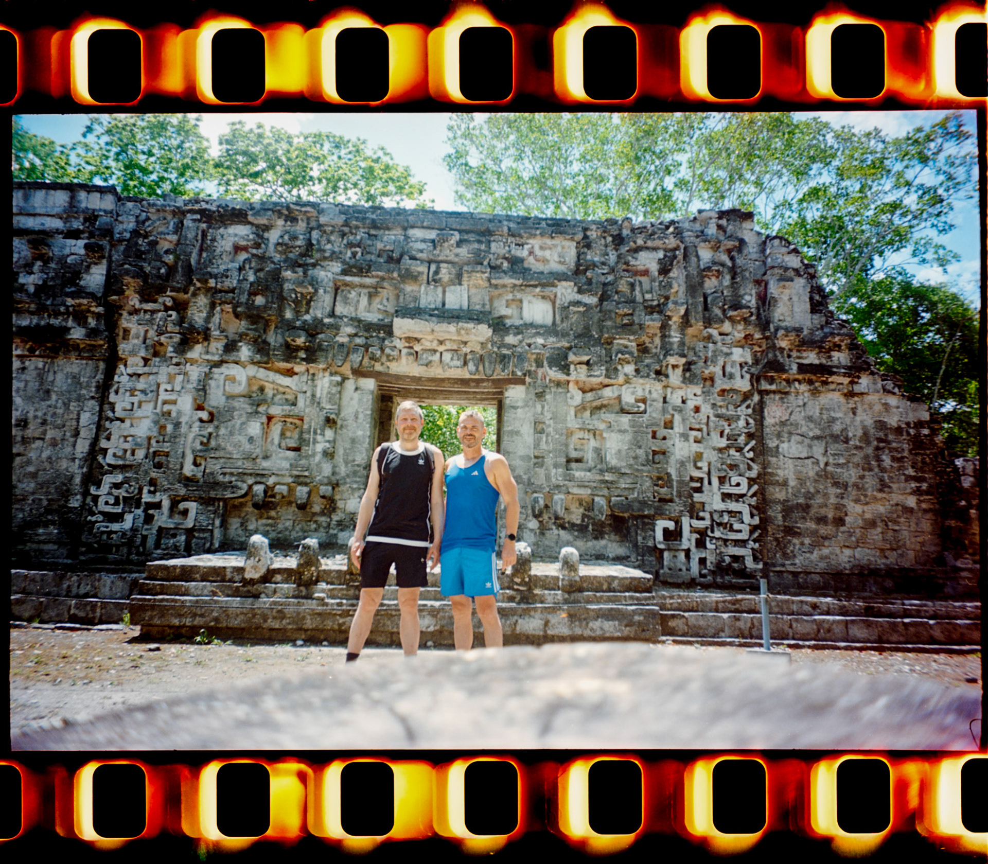 Petit selfie en Kodak Gold devant la bouche du serpent de Chicanná