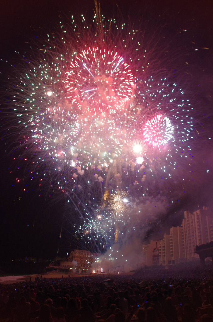 La première image que l'on a de Biarritz, c'est son iconique grande plage, séparée de celle de Miramar par l'Hôtel du Palais, construit pour l'impératrice Eugénie. Du local au touriste d'une saison, chacun se souvient de chaque rocher, du phare, de la ballade le long de la plage, et même, malheureusement sans doute, de l'amas de béton du Victoria Surf. C'est de la Grande plage qu'on sera aussi le mieux situé pour profiter du feu d'Artifice du 15 août, grand événement estival.