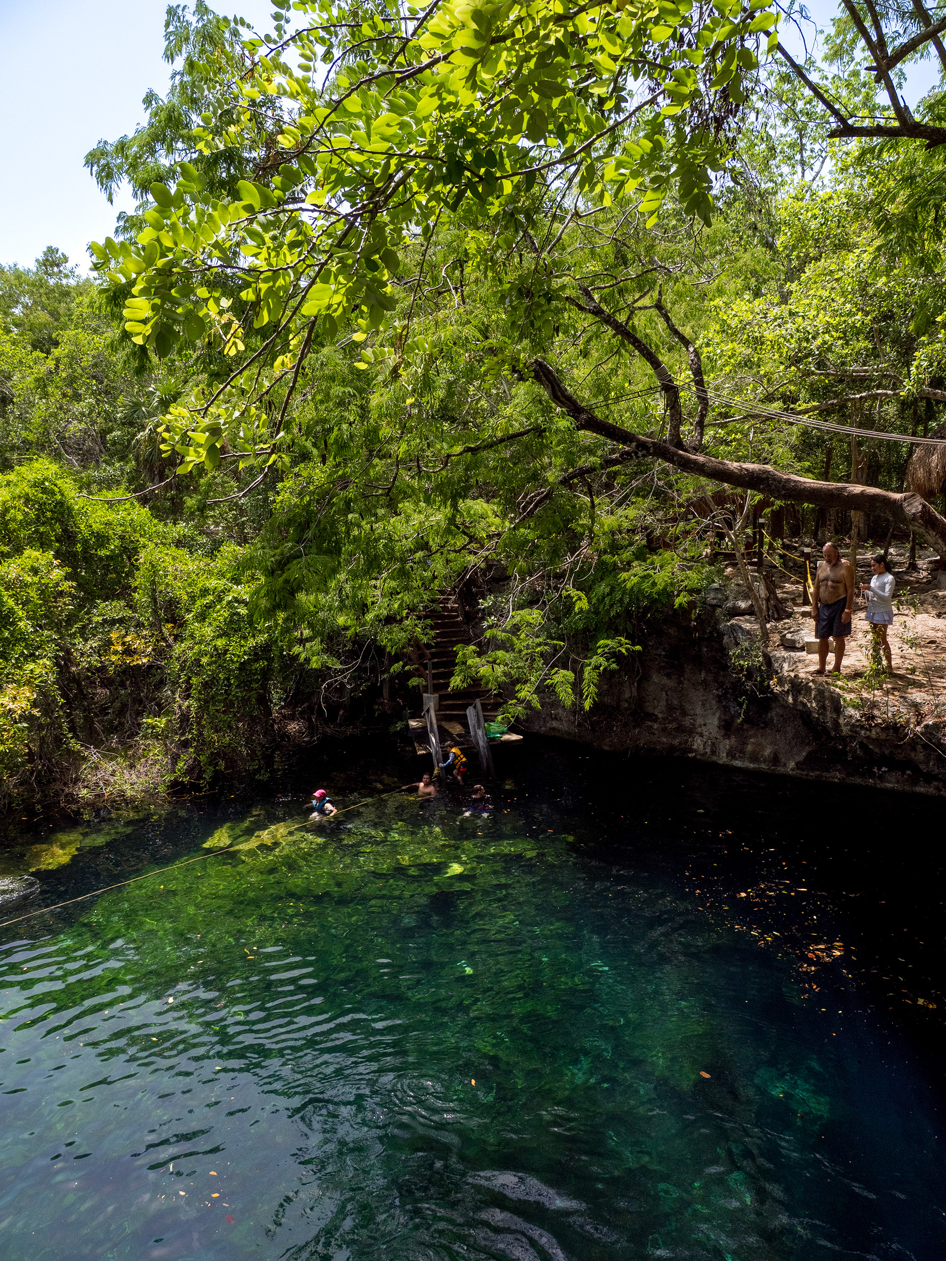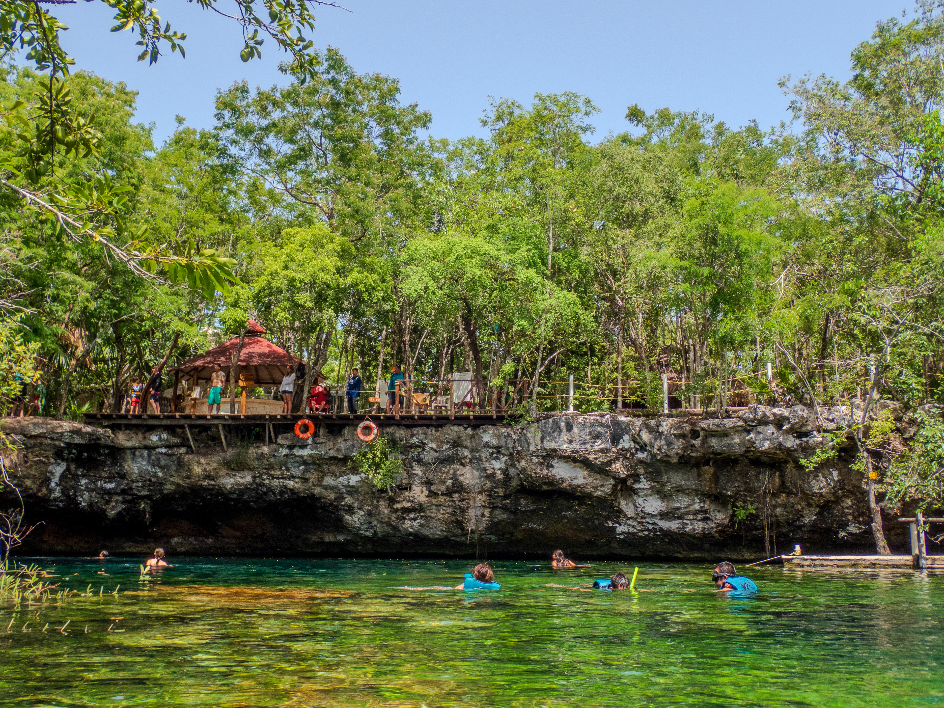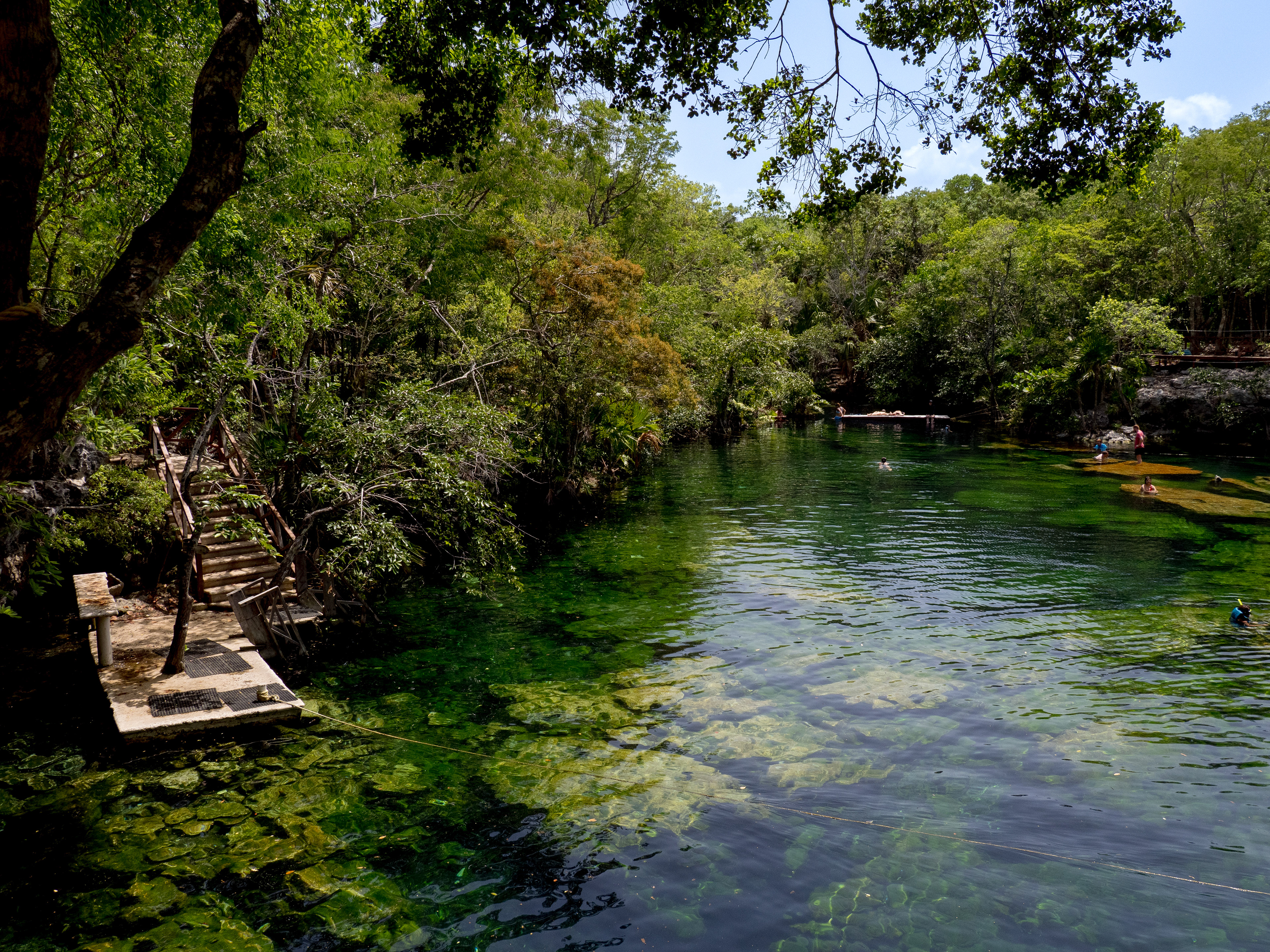 Ce cénote est situé sur la route 307, entre Playa del Carmen et Akumal. Ambiance détendue et familiale. Eau claire, nombreux poissons, tremplin naturel, dans une végétation luxuriante.