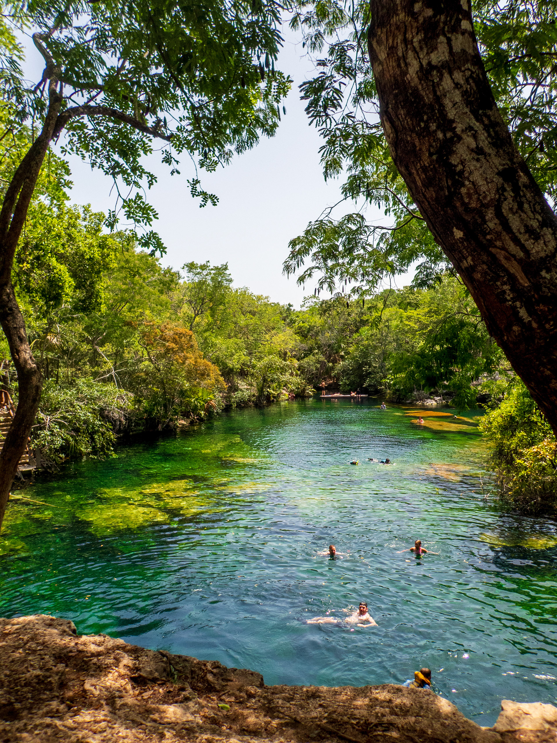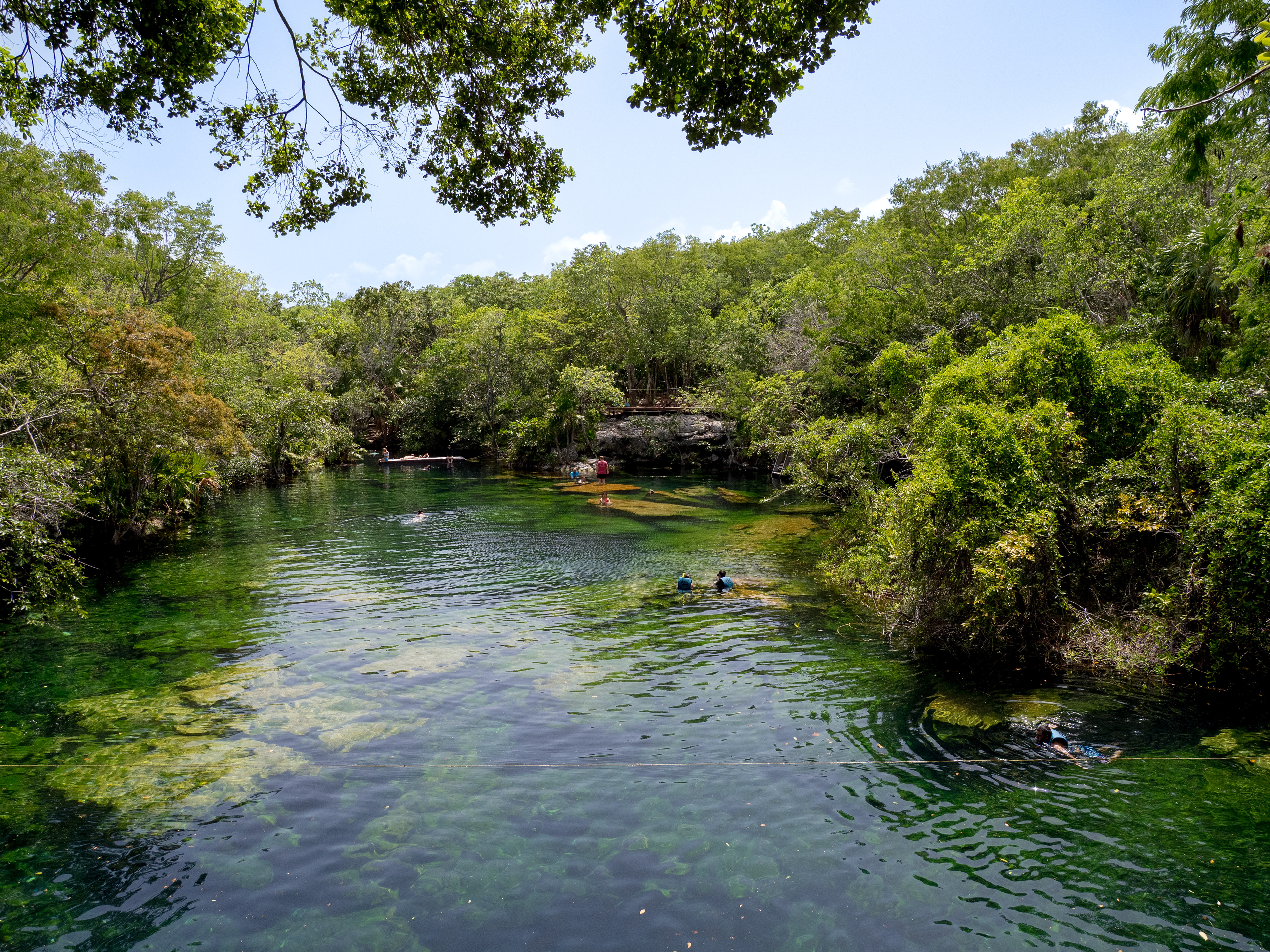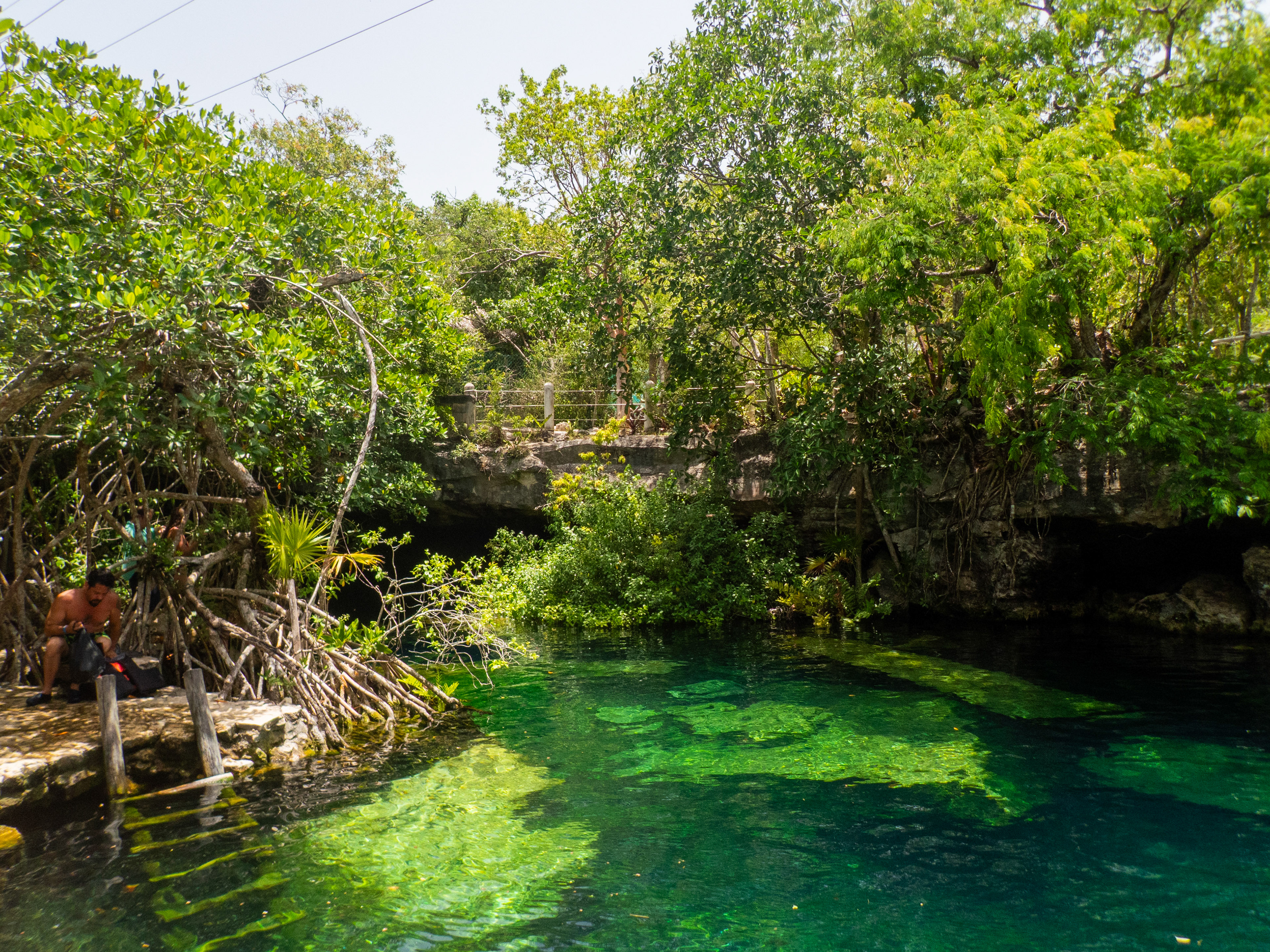 Ce cénote est situé sur la route 307, entre Playa del Carmen et Akumal. Ambiance détendue et familiale. Eau claire, nombreux poissons, tremplin naturel, dans une végétation luxuriante.