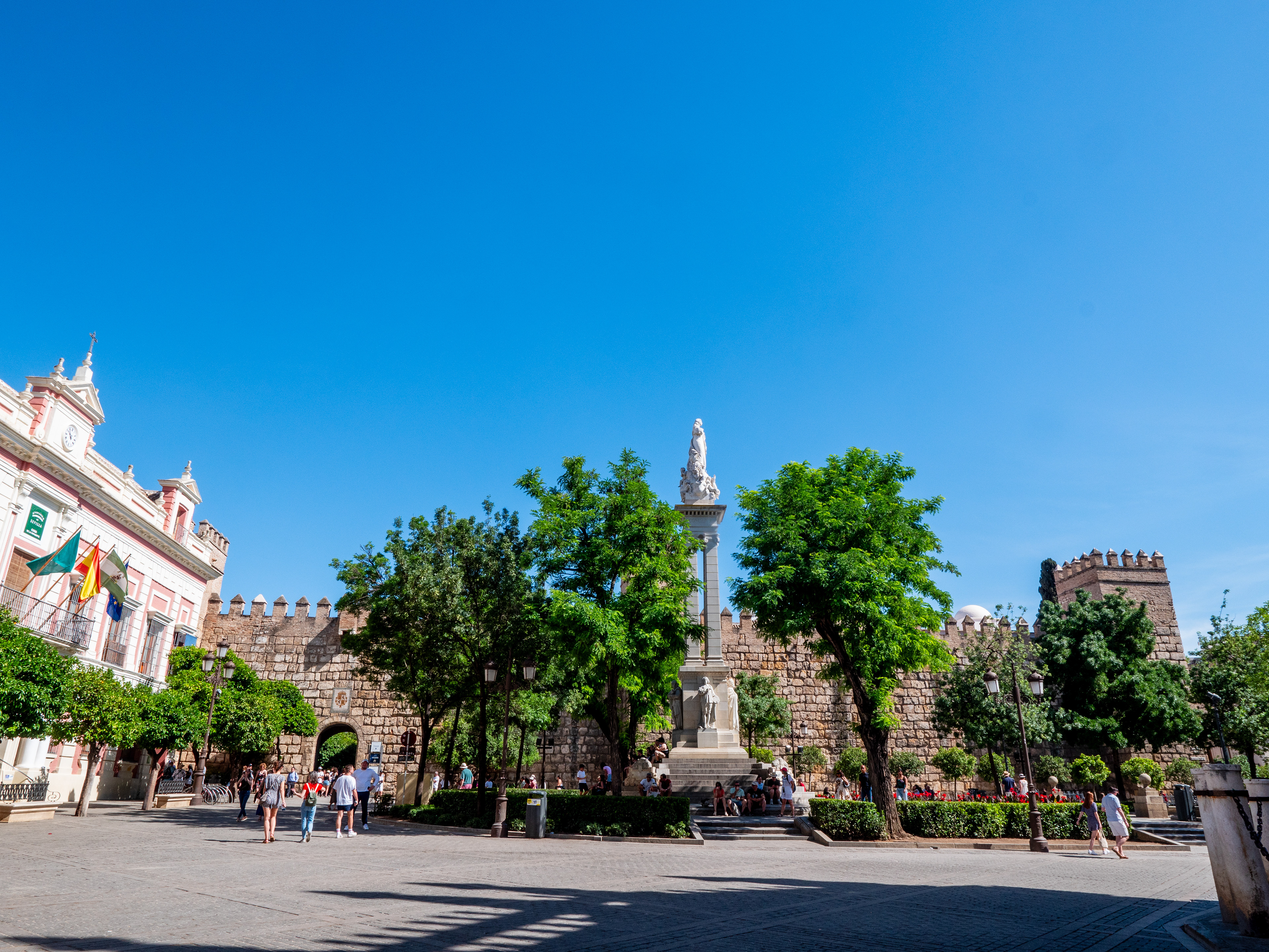 L'alcazar de Séville est situé à l'emplacement d'un ancien site wisigoth. Bâti par les Omeyyades, il a connu de multiples évolutions tant que la période musulmane que catholique. il intègre, à cette dernière époque des éléments d'architecture mudéjar (musulmans d’Espagne devenus sujets des royaumes chrétiens, avant d'être forcés de se convertir à partir de 1499)