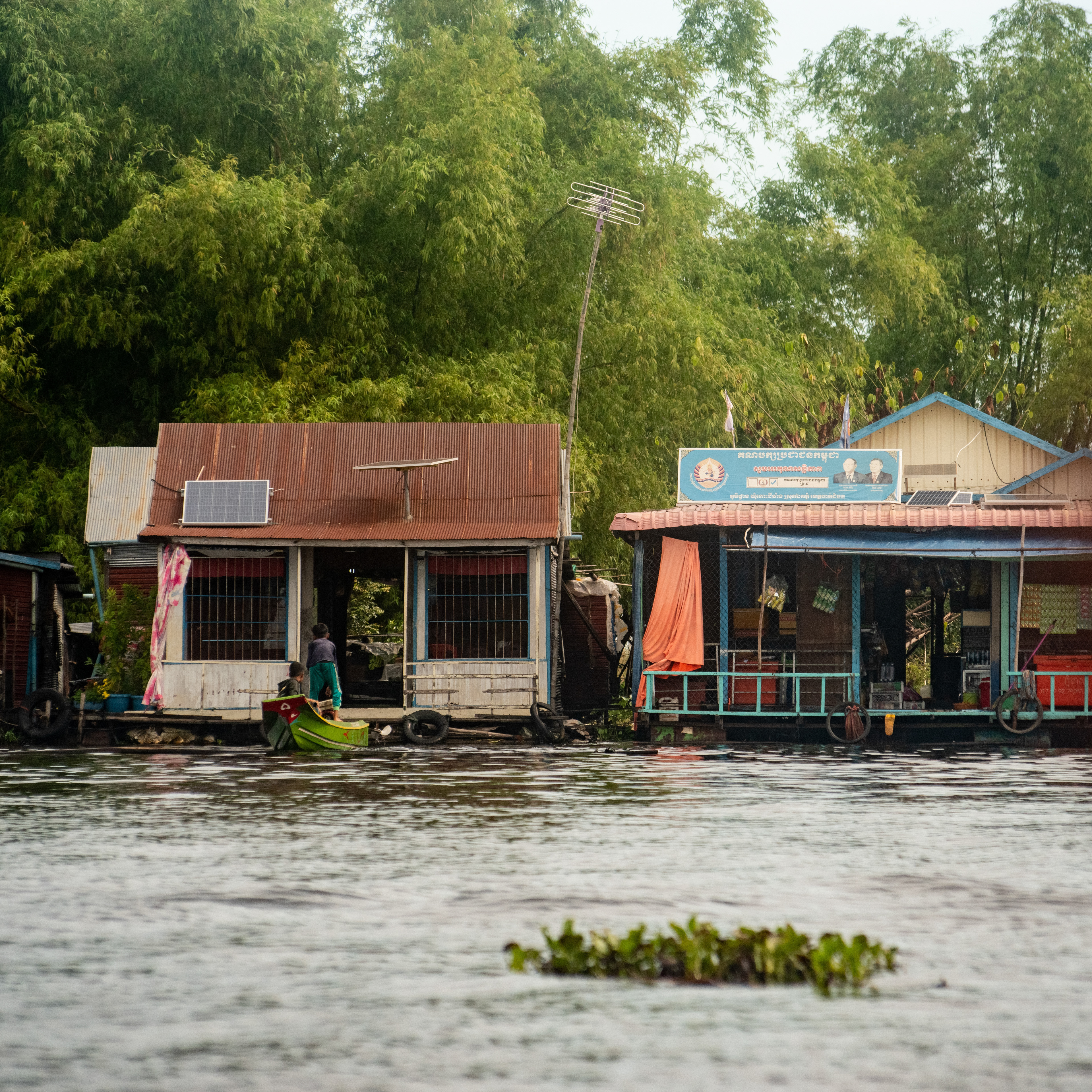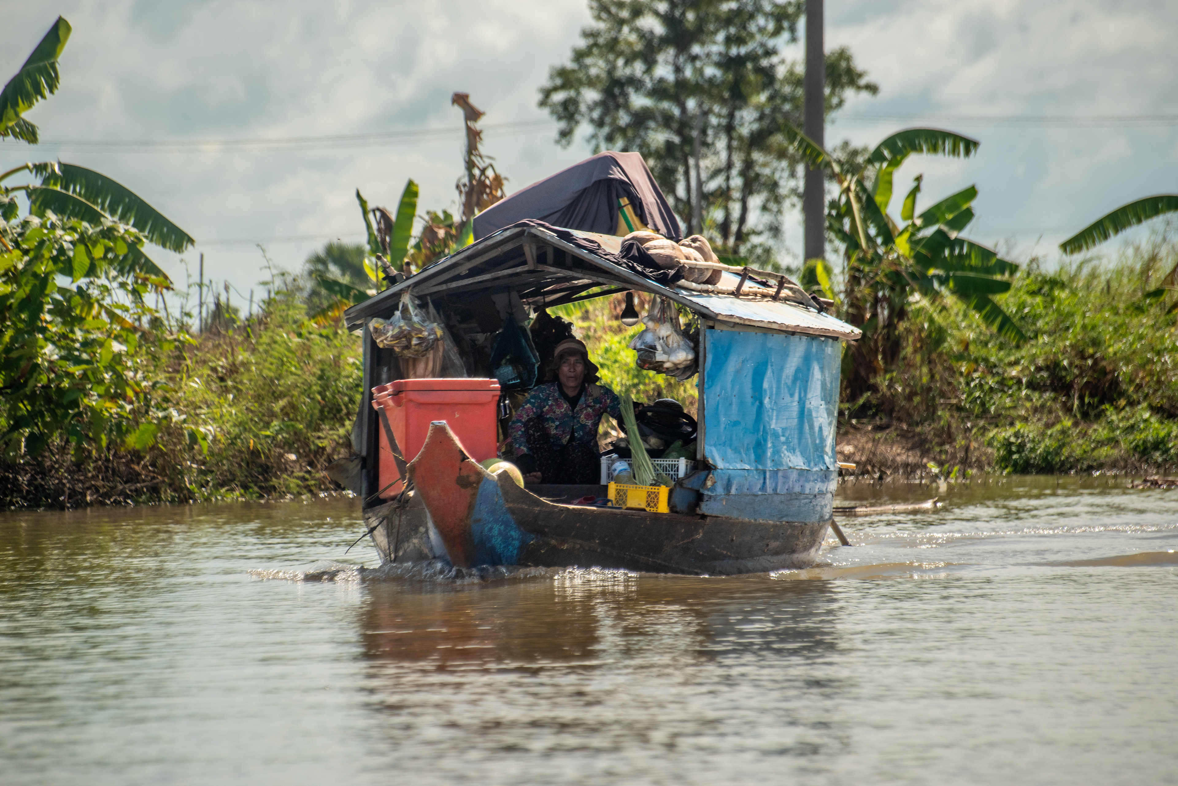 Pour aller de Siem Reap à Battambang, rien de plus dépaysant pour un touriste occidental que de prendre la navette fluviale. En novembre le plus grand lac d'eau douce d'Asie du sud est est encore au plein, et l'essentiel du trajet se fait sur le lac plus que sur les affluents encore noyés.